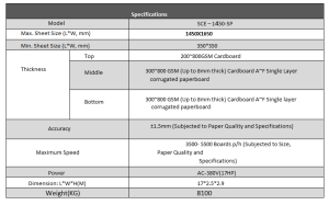 ( BB , BC , AB , EB , EC flute combinations ) - User freindly and can transfer thicker and larges sized boards smoothly & freely.