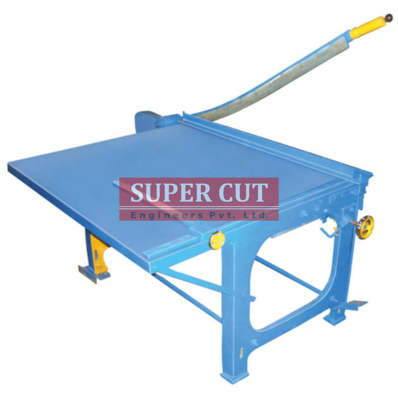 - Designed for cutting board and paper manually, foot pressure chopping is provided for holding the sheet flat while cutting.